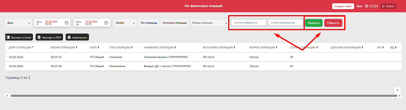 - Поиск - даёт возможность поиска гостей которые ранее пополняли баланс по номеру/ФИО