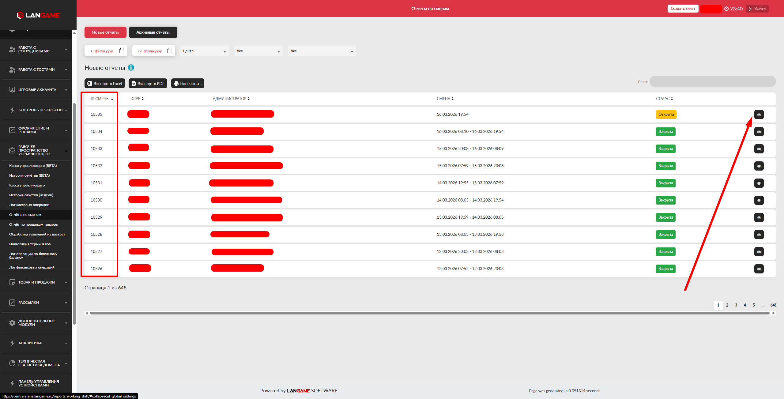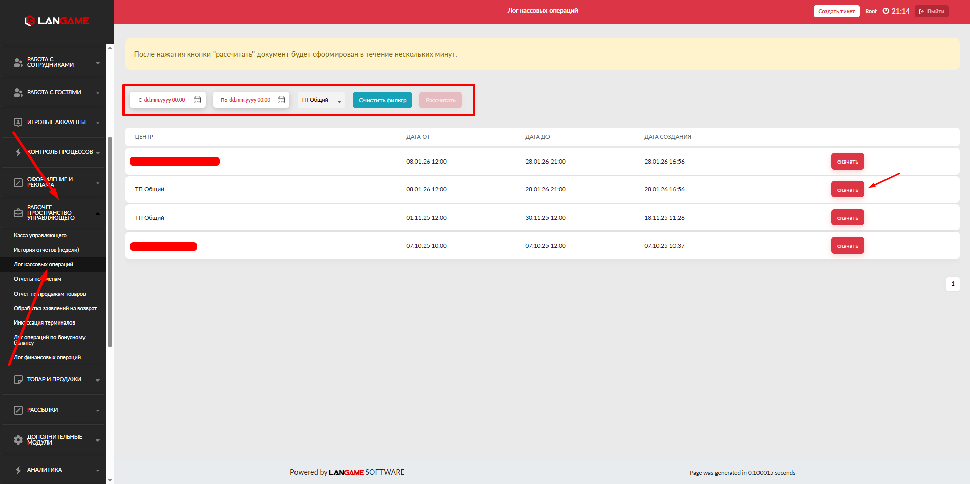 В данном разделе аналитики, мы можем получить информацию о том кто и когда нажал кнопку Остановить во вкладке Все центры онлайн. Данная кнопка отправляет ПК в состояние Соединение, отключая службу LANGAME. Информация в данной вкладке отображается в следующем формате: