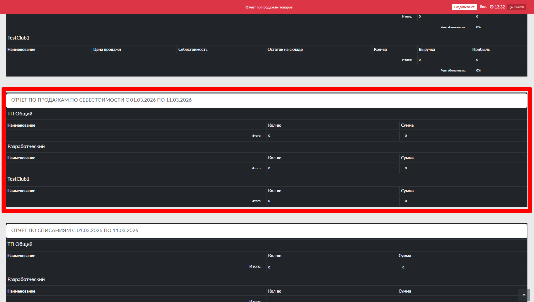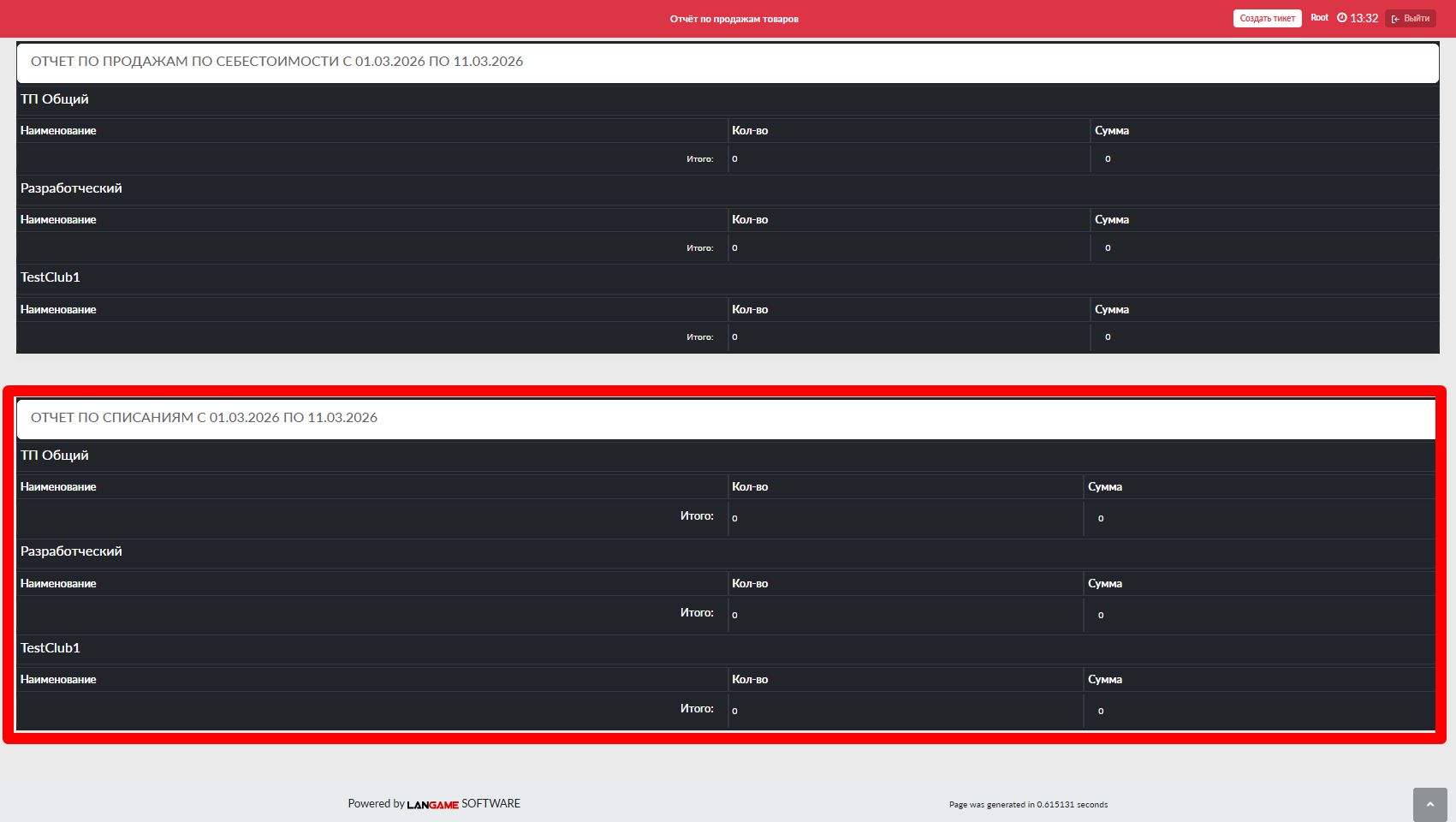 Отображаются только расходы, зафиксированные в панели администратора на данный момент и в рамках текущих суток (с 00:00 до 23:59)