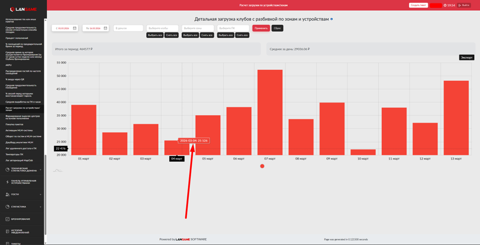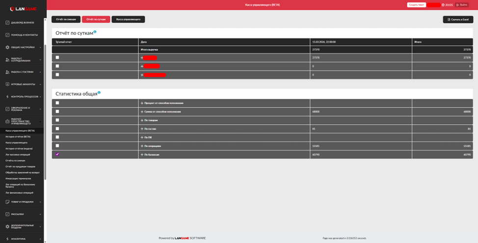 Также здесь можно найти суммы денежных средств и бонусов, потраченных на активацию игровых сессий в каждой из зон на данный момент и в рамках текущих суток (с 00:00 до 23:59)