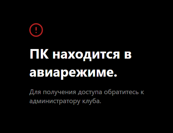 Для выхода из авиарежима администратор клуба должен нажать иконку самолета в админке. Выход из авиарежима возможен только при наличии связи с доменом.