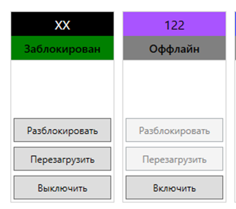 Кнопки Разблокировать/Заблокировать. - Блокируют и разблокируют пк. При блокировке ПК перезагружается. Это необходимо для обеспечения безопасности данных пользователей.