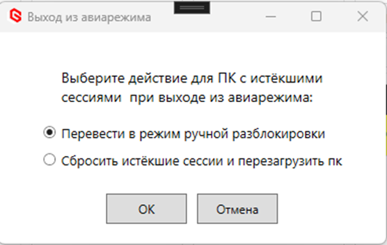 При выходе из авиарежима администратор выбирает одно из двух возможных действий