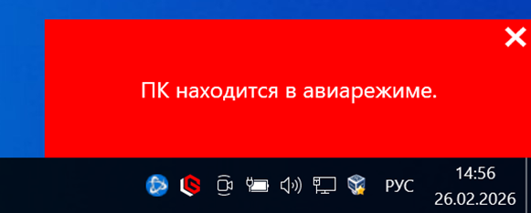 При попытке открыть лк или меню трея на разблокированном пк во время авиарежима будет показано сообщение