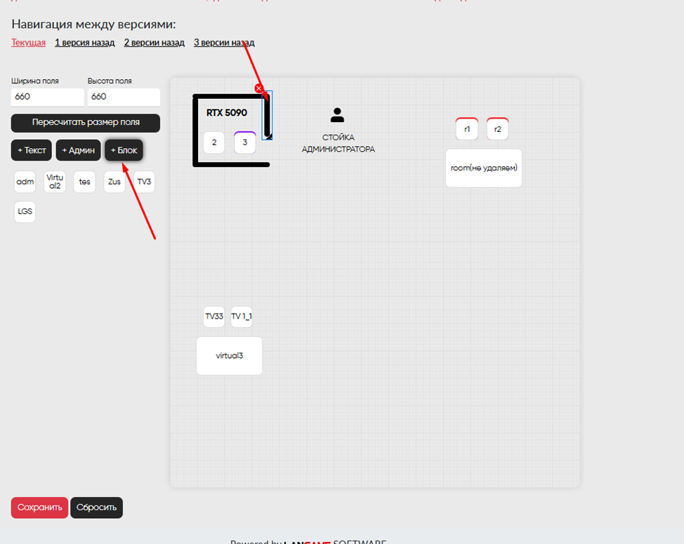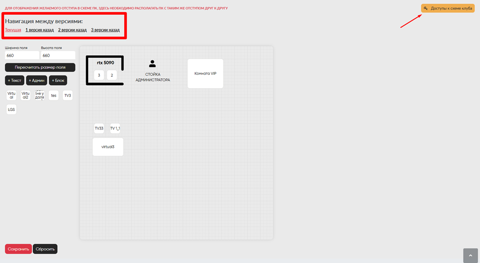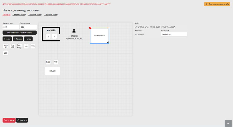 Для отображения клуба как на карте в адм. ПО, есть «Генератор карт для администратора», он настраивается аналогично обычному генератору карт, но в нем выставляются только ПК и комнаты без стенок и подписей