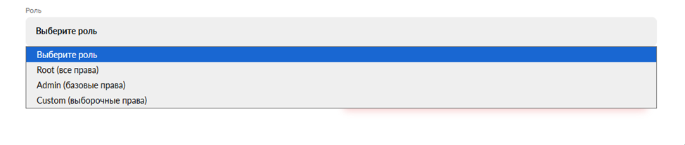 - Роль – выданная роль (Root, Admin или Custom)