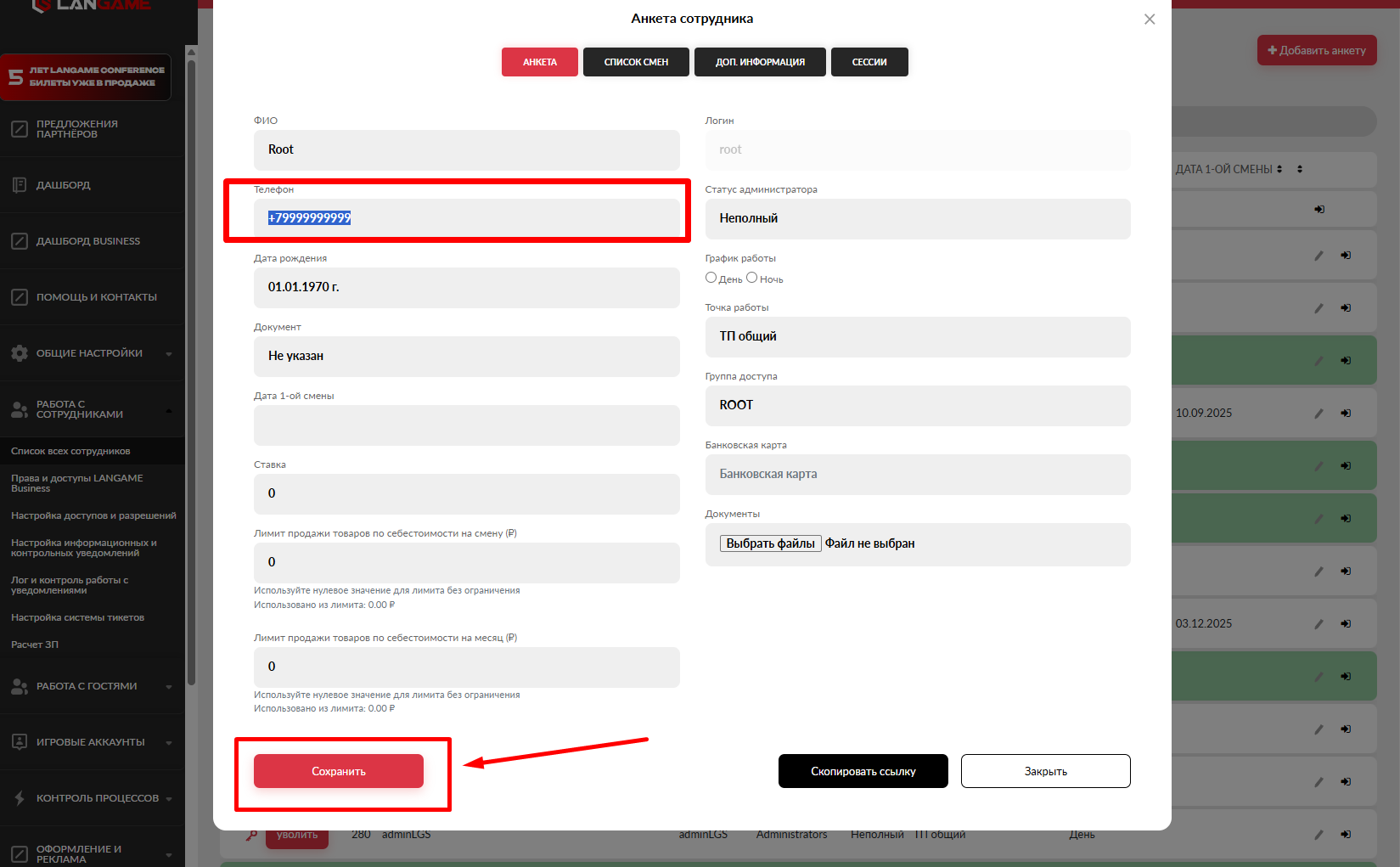 В открывшейся анкете, в графе "Телефон" вписываем свой номер телефона и сохраняем