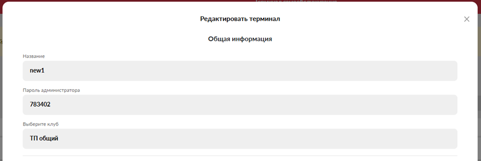 Пароль администратора – 6-значный числовой пароль для доступа к Меню Администратора на терминале. Подробнее в разделе Меню администратора