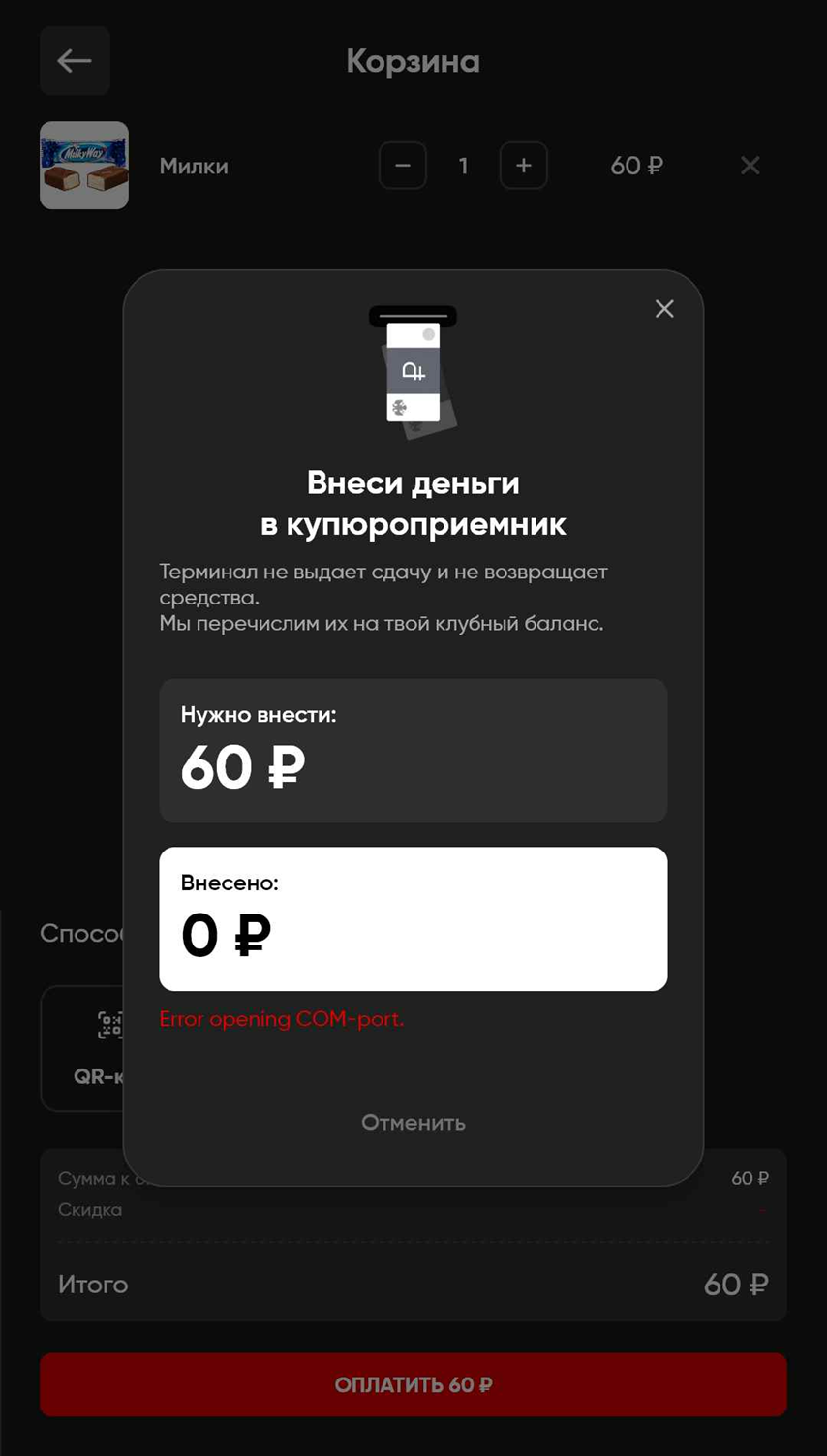 Прием наличных – Включает/Отключает возможность оплаты наличными через терминал