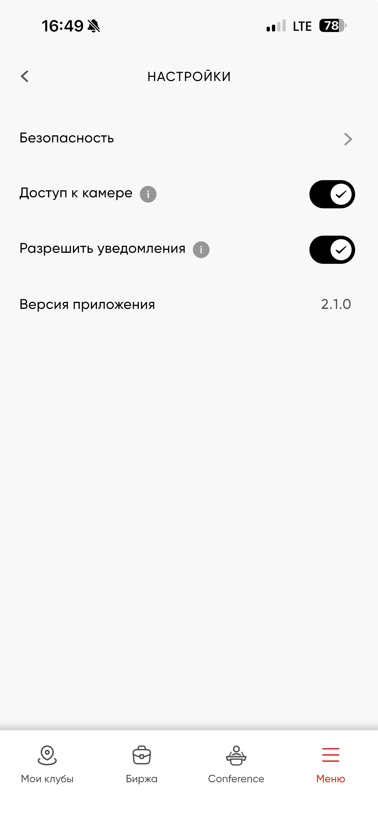 В данном разделе можно изменить настройки приложения включить/выключить доступ к камере, а также отправку уведомлений