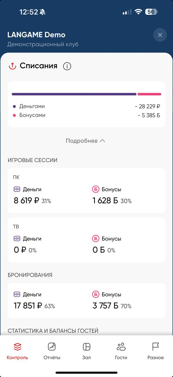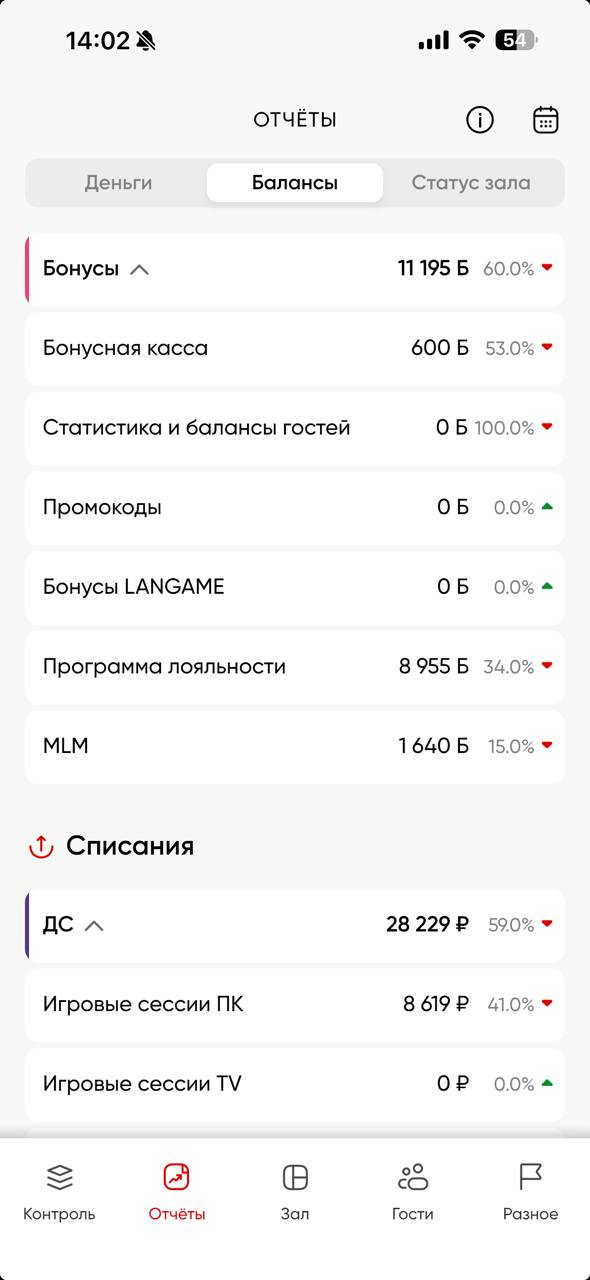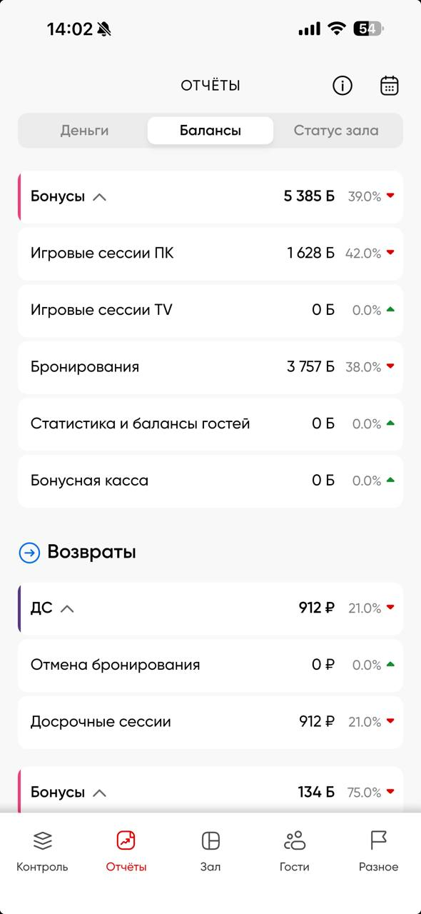 Статистика и балансы гостей — % денежных средств/бонусов