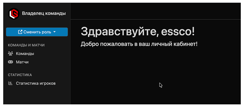 Владельцу команды доступны два основных раздела: «Команды» и «Матчи».